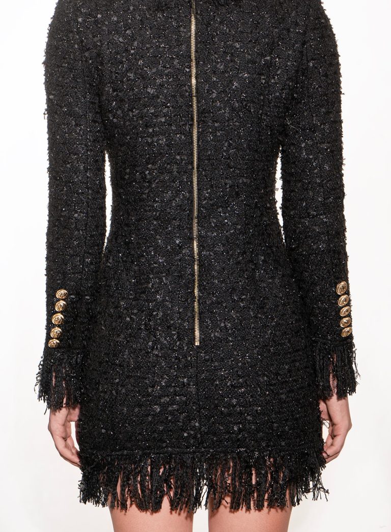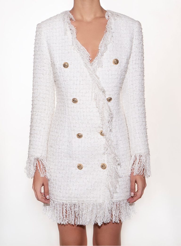 Double-Breasted Fringed Tweed Mini Dress – 00078