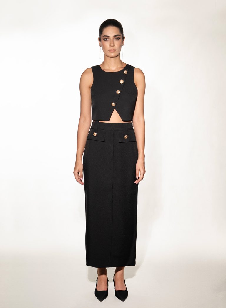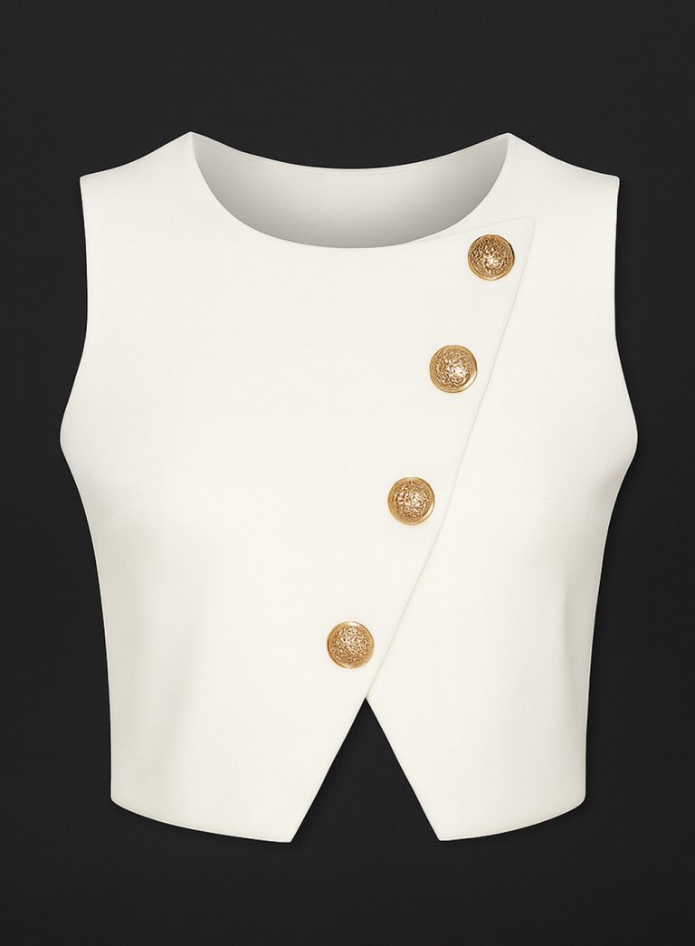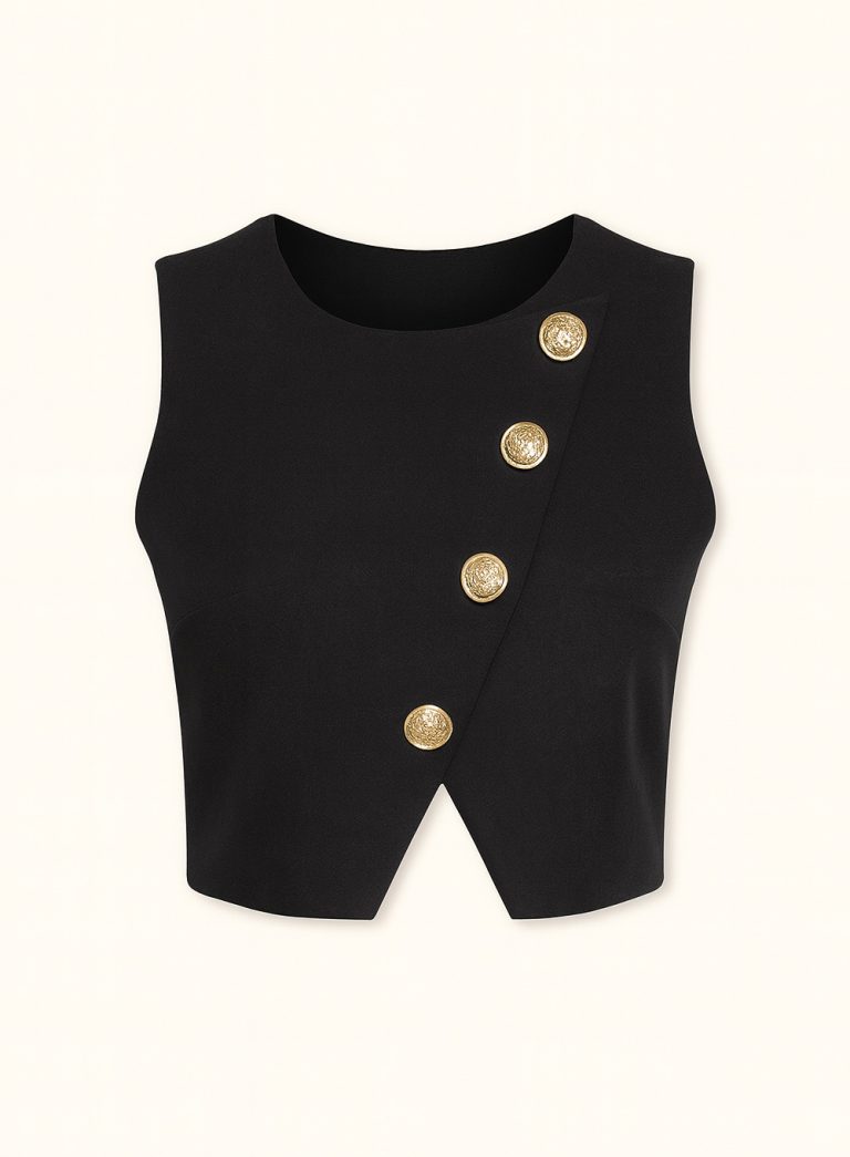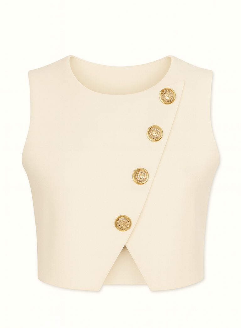 Asymmetric Buttoned Crop Top – 001474