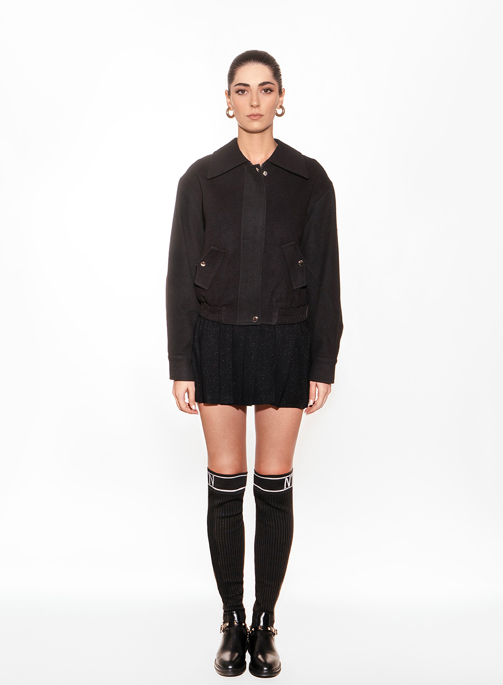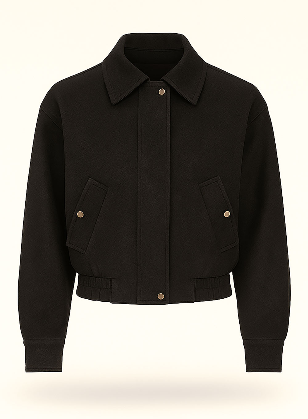 A tailored cropped jacket designed with a minimalist silhouette and utilitarian edge. Featuring structured shoulders, flap pockets, and an elasticated hem for a refined yet relaxed fit. Perfectly balanced between classic and modern, it pairs effortlessly with skirts or high-waisted trousers for a confident urban look.