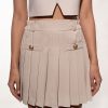 Defined by precise pleating and refined tailoring, this mini skirt reimagines classic uniform codes with a contemporary edge. The embossed metallic buttons and structured waistband introduce a subtle statement of sophistication. A versatile piece that transitions effortlessly from day to evening, pairing seamlessly with tailored tops or blazers.