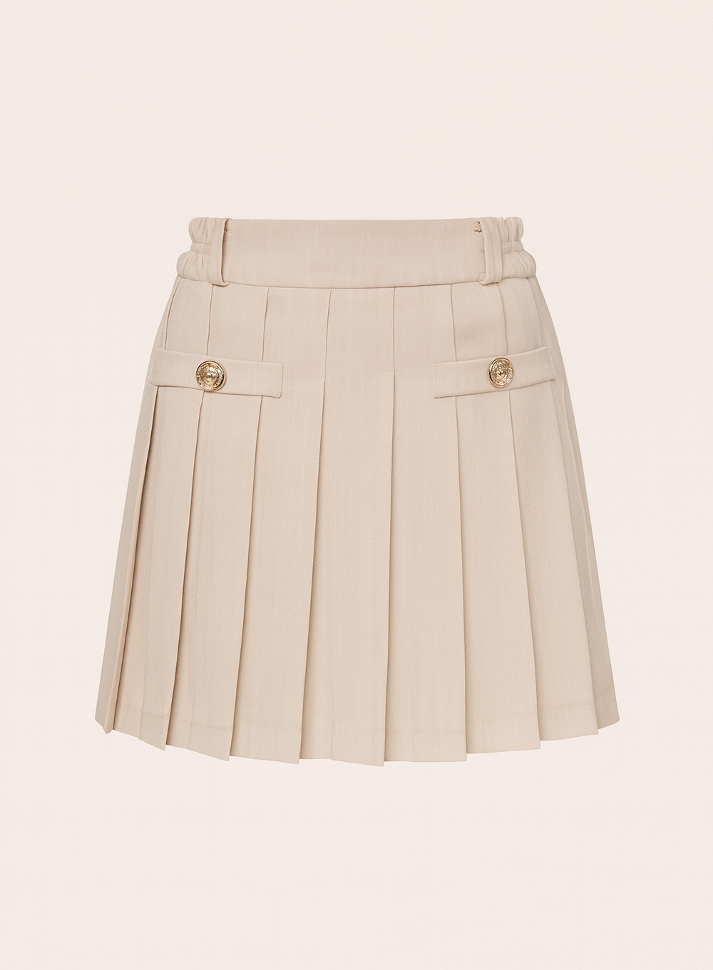 Pleated Mini Skirt with Embossed Buttons – 001513